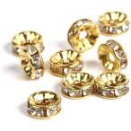 【京珠堂】 ラインストーン ロンデル 8mm ゴールド 平型 100個(ステンレス)…