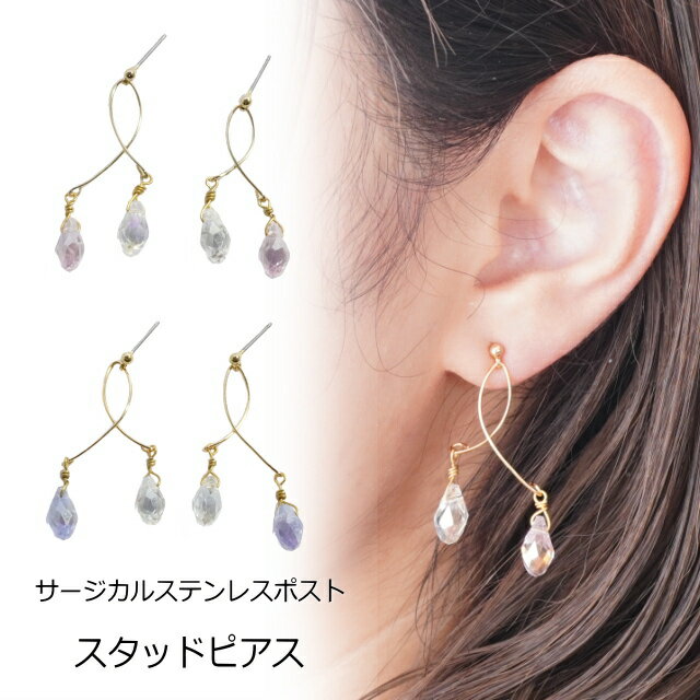 \半額★50%OFF/レディースピアス 天秤 ドロップ 雫 しずく クリアビーズ ピンク パープル サージカルステンレスポスト スタッドピアス フック(チタン/樹脂)orイヤリングへの変更OK 金属アレルギー対応