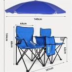 ヘビーデューティー ダブル ビーチチェア 帯天蓋付き - 軽量折りたたみキャンプチェア、頑丈フレームで2人用、アウトドア・ビーチ・バーベキュー・旅TE001