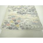 名古屋帯 リサイクル お太鼓柄 九寸 正絹 白鼠地 ペールグレー 手染め 手描き 辻が花 カジュアル 中古品 仕立て上がり みやがわ sb54377