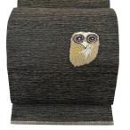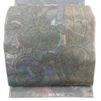 袋帯 逸品 加納幸 落款あり 動物 英字 金銀糸 刺繍 青灰色 お太鼓柄 正絹 中古