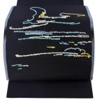 美品 袋帯 逸品 証紙あり 博多織 幾何学 箔 濃紺 お太鼓柄 正絹 中古