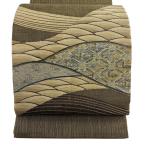 美品 袋帯 逸品 証紙あり 桜井織物 風神雷神 幾何学模様 銀糸 箔 薄黄土色 お太鼓柄 正絹 中古