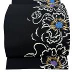 美品 袋帯 逸品 菅有鬼一 落款あり 花 金彩 黒 お太鼓柄 正絹 中古