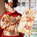袋帯 帯 お太鼓用 振袖 ポリ 六通 オフ白 流水に四季の花 芯なし 460cm