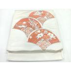 美品 袋帯 秀品 草花 金糸 箔 金色 お太鼓柄 正絹 中古