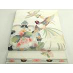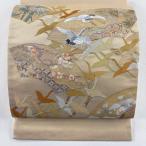 名古屋帯 逸品 松竹梅 鳥 金銀糸 刺繍 クリーム 正絹 中古