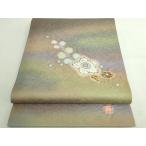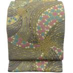 袋帯 逸品 華文 菱 金糸 刺繍 灰色 お太鼓柄 正絹 中古