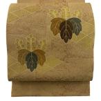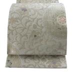 美品 袋帯 逸品 蜀江文 秋草 刺繍 金糸 ベージュ お太鼓柄 正絹 中古