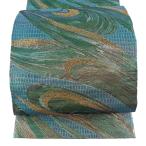 袋帯 逸品 佐波理 落款あり 西本願寺宝 箔 青緑 お太鼓柄 正絹 中古