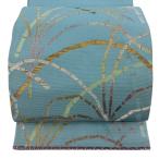 美品 袋帯 逸品 久保田一竹工房 落款あり 幾何学 草花 金通し ぼかし 水色 お太鼓柄 正絹 中古