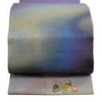 美品 袋帯 逸品 久保田一竹工房 落款あり 草花 ぼかし 金糸 薄紫 お太鼓柄 正絹 中古