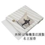20%OFF SALE 名古屋帯 新品仕立済 西陣 辻梅機業店謹製 チャップリン 音符模様 新品 仕立て上がり h2798