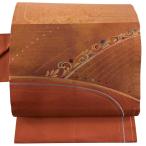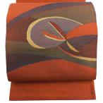 美品 袋帯 優品 幾何学模様 箔 赤茶 お太鼓柄 正絹 中古