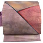 名古屋帯 優品 幾何学模様 箔 灰紫 正絹 中古
