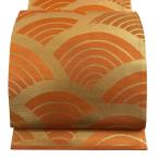 美品 開き名古屋帯 優品 川島織物 落款あり 関西仕立て 青海波 金糸 箔 オレンジ 正絹 中古