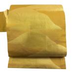 美品 名古屋帯 優品 山並み 箔 からし色 正絹 中古