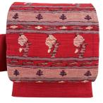 名古屋帯 優品 段縞 草花 赤 正絹 中古