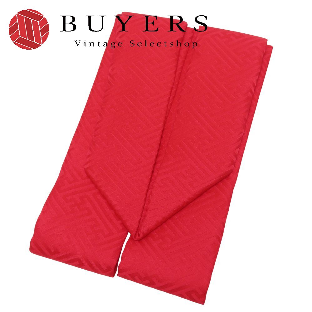 【20%OFF!!楽天スーパーSALE!!】【中古】 名古屋帯 ポリエステル レッド 名古屋仕立て 無地 幾何学模様 和装 呉服 和服 きもの レディース 女性