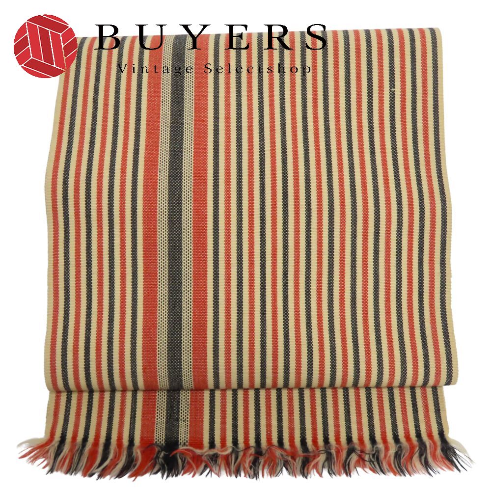 【20%OFF!!楽天スーパーSALE!!】【中古】 名古屋帯 ウール ベージュ系 朱色 ブラック 縞 カジュアル モダン 和装 呉服 和服 きもの レディース 女性