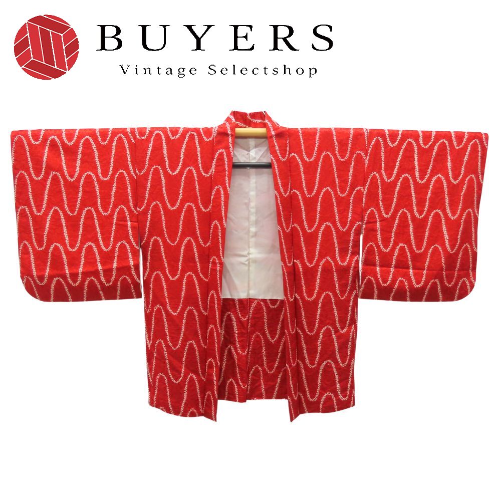 【20%OFF!!楽天スーパーSALE!!】【中古】 羽織 正絹 ポリエステル 赤 レッド 羽織紐付き モダン おしゃれ 和装 呉服 和服 きもの レディース 女性