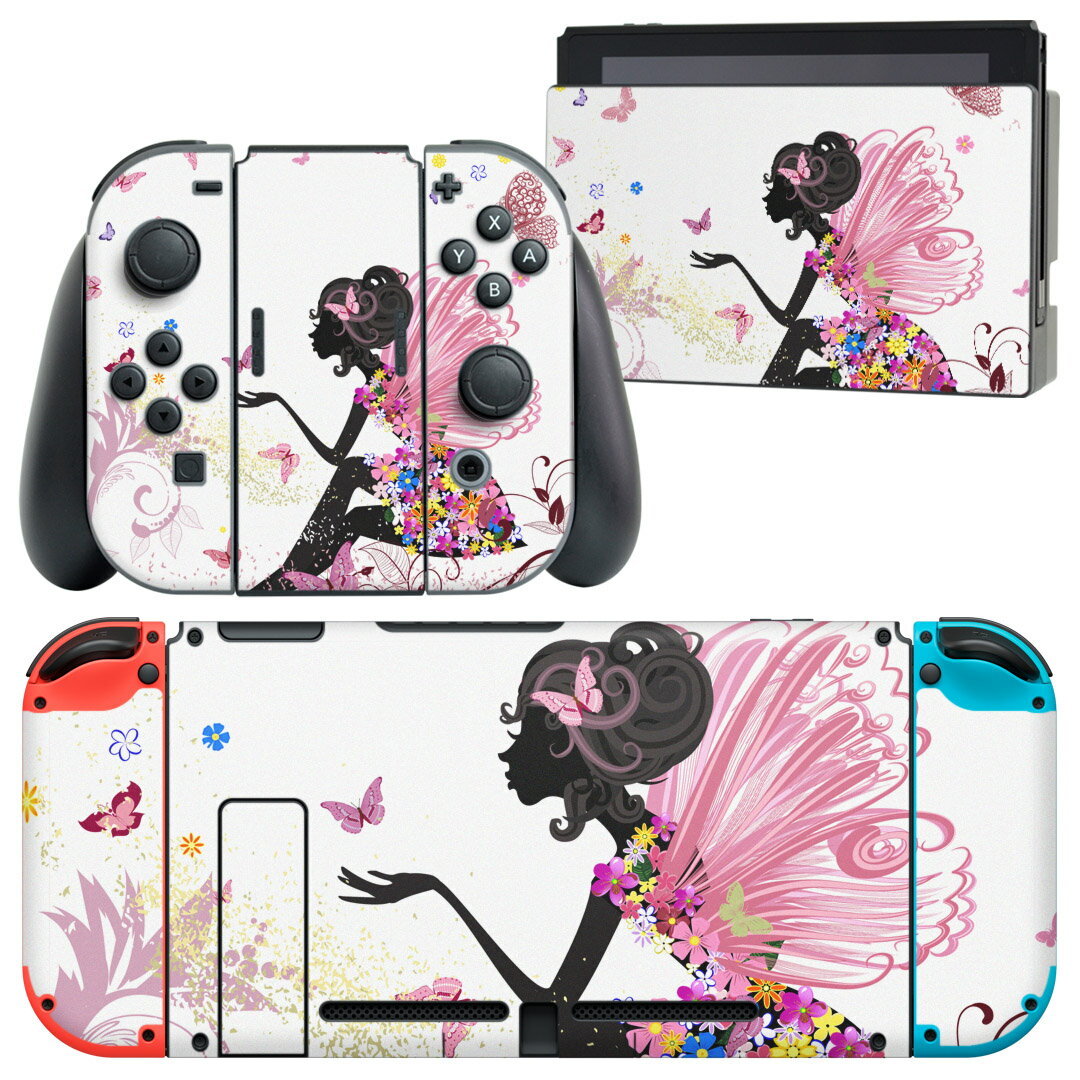igsticker Nintendo Switch 用 デザインスキンシール 任天堂 ニンテンドー スイッチ 専用 本体ドック Joy-Con Joycon ジョイコン 専用 ゲーム機 カバー アクセサリー フィルム ステッカー 001595 妖精 女の子 蝶