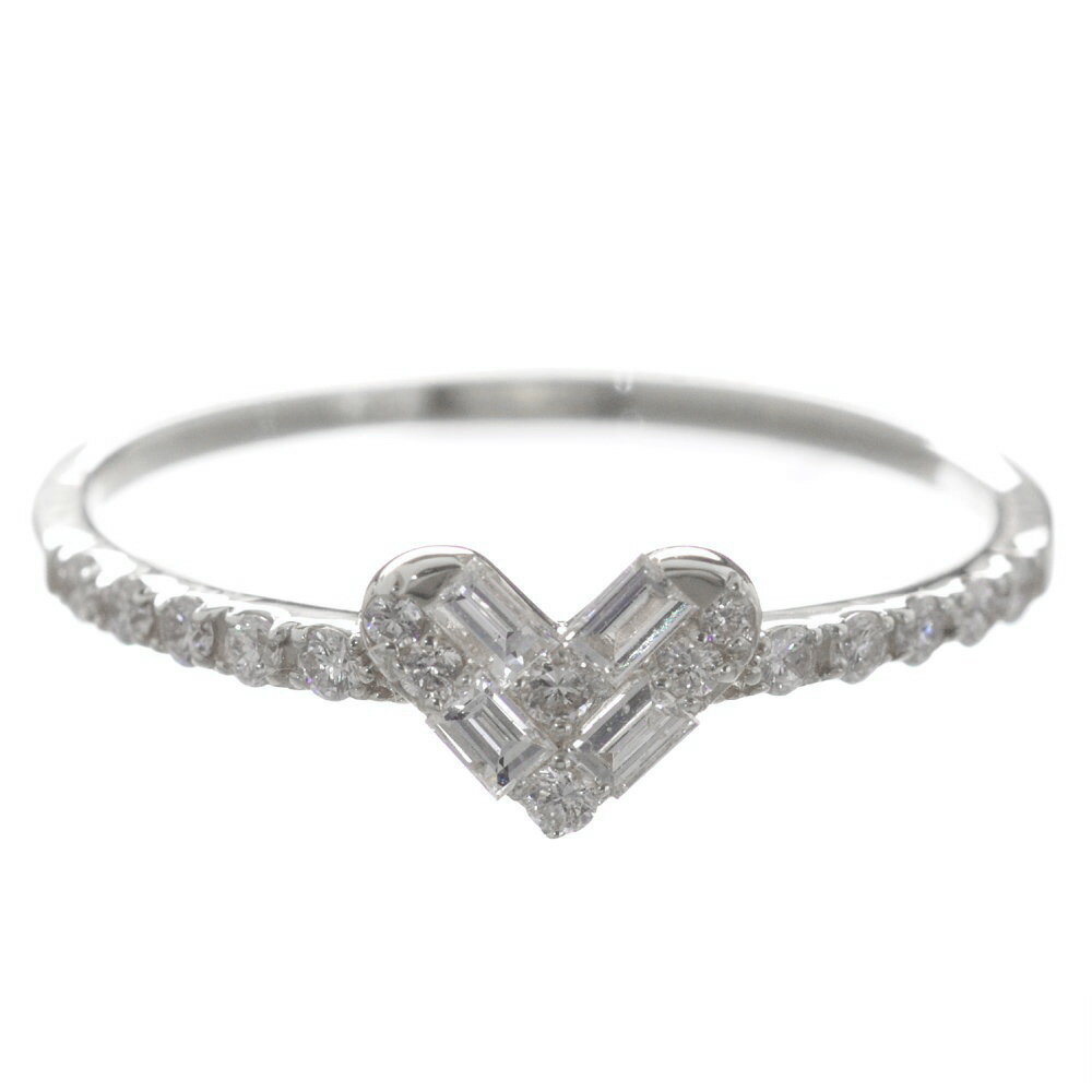 【お買物マラソン★10%OFFクーポン】指輪 レディース K18 18KWG 18金 リング バゲットカット ダイヤモンド ハートリング ホワイトゴールド 細身 日本製 刻印入り 鑑別書付き