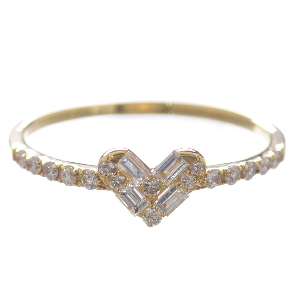 【お買物マラソン★10%OFFクーポン】指輪 レディース K18 18K 18金 リング バゲットカット ダイヤモンド ハートリング イエローゴールド 細身 日本製 刻印入り 鑑別書付き