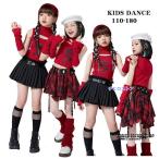 子供服 ヒップホップ 黒 赤 レッド キッズ ダンス 衣装 女の子トップス スカート チア ダンス衣装 キッズダンス衣装 ヘソ出し k-pop jazz ストリート ウエア h