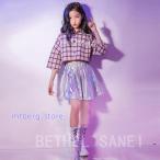 キッズ ダンス衣装 ヒップホップ HIPHOP 子供 トップス シャツ スカート チェック柄 キラキラ チア チアダンス ジャズダンス 体操服 練習着 応援団