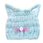 shttown 子供 タオルキャップ 被るだけ 簡単ドライ 速乾 可愛い ネコ ドライキャップ お風呂 プール キッズ (ブルー)
