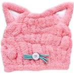 子供 キッズ 用 かわいい ねこみみ タオルキャップドライキャップ ヘアターバン ヘアタオル 速乾 お風呂 プール スイミング(ピンク)