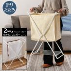 AZUMAYA(東谷) 収納バスケット タオルハンガー 2way 折りたたみ スチール コットン 幅約49.5cm 奥行約25cm 高さ約70cm ホワイト|MIP-32WH(4985155256761)