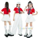 女の子 赤 白 ダンス セットアップ シャツ ネクタイ カーゴパンツ スカート 子供 JAZZ ダンス服 ヒップホップ hiphop チームダンス 小学生 学生 kpop 110-180cm