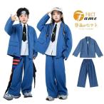 キッズ ダンス衣装 ヒップホップ セットアップ ストライプブレザー ワイドパンツ 白シャツ ネクタイ付き スーツスタイル ストリートファッション 子供用 ステー