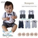 ロンパース カバーオール ベビー 赤ちゃん 子供 男の子 女の子 半袖 半ズボン 蝶ネクタイ サスペンダー風 セットアップ風 襟付き ラウンドネック