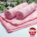 80匁 SAKURAチェス 600枚セット 送料無料 おしぼりタオル 業務用おしぼり 薄ピンクカラー 市松 チェス柄 小判×中厚 ハンドタオル 子供 保育園 幼稚園