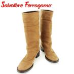 【初売りSALE★30%OFFクーポン】サルヴァトーレ フェラガモ ブーツ シューズ 靴 レディース ♯7C ガンチーニベルト ロング ブラウン ゴールド 中古
