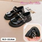 フォーマルシューズ 靴 ローファー 子供用 キッズ ジュニア 女の子 くつ マジック テープ フェイクレザー ラウンドトゥ フェイクパール パール調