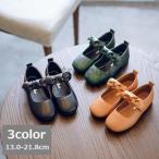 フォーマルシューズ 甲ストラップ フラット ぺたんこ キッズ ジュニア 女の子 子供靴 ラウンドトゥ フェイクレザー マジック テープ リボン おしゃ