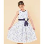 【10%OFFクーポン配布中!10/27(月)9:59まで】子供服 女の子 ワンピース ジャンパースカート 春夏 ノースリーブ 日本製 フォーマル フォーマルドレス セレモニー 袖なし お出かけ リバティプリント使用 花柄 リボン 取り外し ブルー 12
