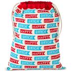 Hallmark (ホールマーク) 19インチ Lサイズ 誕生日 巾着ギフトバッグ (赤と青の「Happy Birthday」フラグ) 子供 孫 大人 同僚 友達