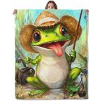 【並行輸入品】Lugiu 面白いカエルブランケット、軽量で快適な漫画の釣りカエルの麦わら帽子ブランケット、ソファ、寝室、ソフトプラッシュトラベル