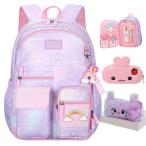 Jcobvig カワイイ バックパック ガールズ キッズ かわいい 学生 スクールバックパック ペンバッグ付き パープル エステティック スターリー レインボー ラップト