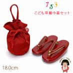 七五三 3歳 5歳 草履巾着セット レッド 赤 S 16cm M 18cm 女の子用 子供用 子供草履 草履 巾着 セット 鈴付き草履 753 着物 三歳 三才 五歳 五才