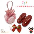 京都室町st. 七五三 3歳 女の子用 エナメル子供草履(Sサイズ)と手提げちりめん巾着のセット「赤系」KKN334-re180set