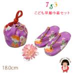 京都室町st. 七五三 3歳 女の子用 小紋柄子供草履(18cm) こども巾着・髪飾り3点セット「薄紫、花柄」THFM3set