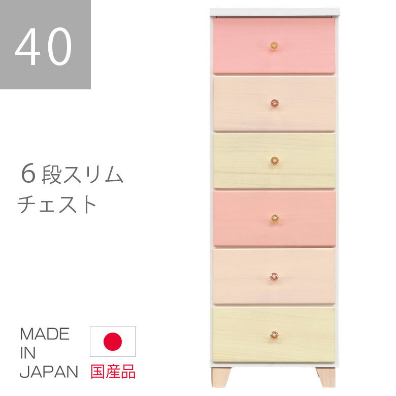 チェスト ハイチェスト スリム 白 タンス 6段 幅40cm 高さ110cm おしゃれ 引出し収納 収納 引き出し リビング収納 ホワイト ピンク ベージュ イエロー 木製 洋服ダンス 子供部屋 女の子 子供用
