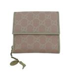 【特別割引★30%OFF】グッチ GUCCI 二つ折り財布 GG柄 長靴チャーム付き オフホワイト×ピンク レディース 中古