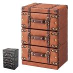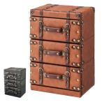チェスト 3段 トランク風 レトロデザイン 幅41cm ( タンス 衣類収納 トランク 引き出し )